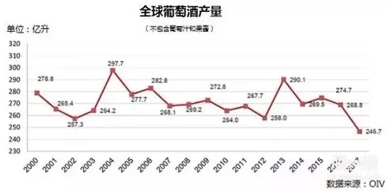 国际葡萄与葡萄酒组织(OIV)上周发布官方通讯稿,称欧洲葡萄酒2017年份的产量可能将减少20亿升到25亿升,全球葡萄酒产量也将在70年来首次低于消费量,价格也可能会达到历史最高水平。