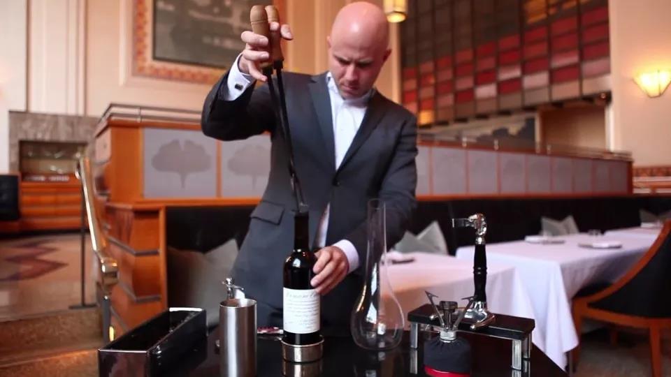 红葡萄酒的侍酒过程相当讲究,专业侍酒师更会拿出各种道具放在桌上,仿佛即将
