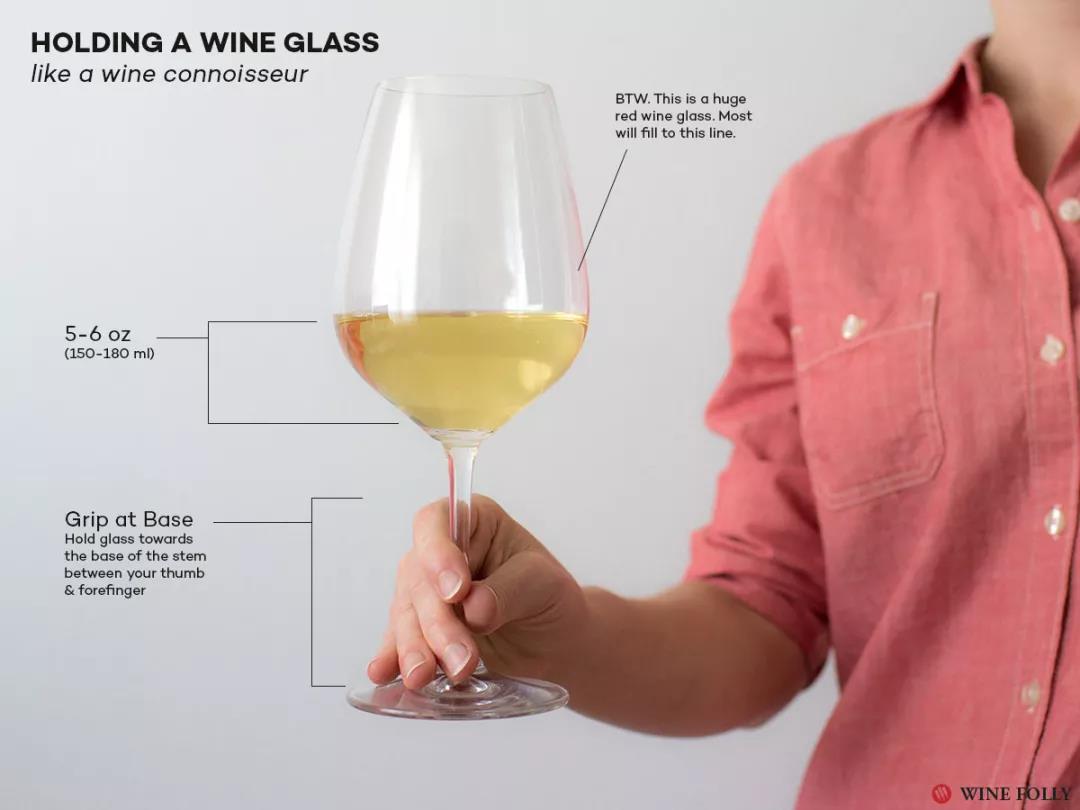 用白葡萄酒杯侍酒的时候,建议在杯中倒入150-180毫升,与杯子最宽处同高,以获得