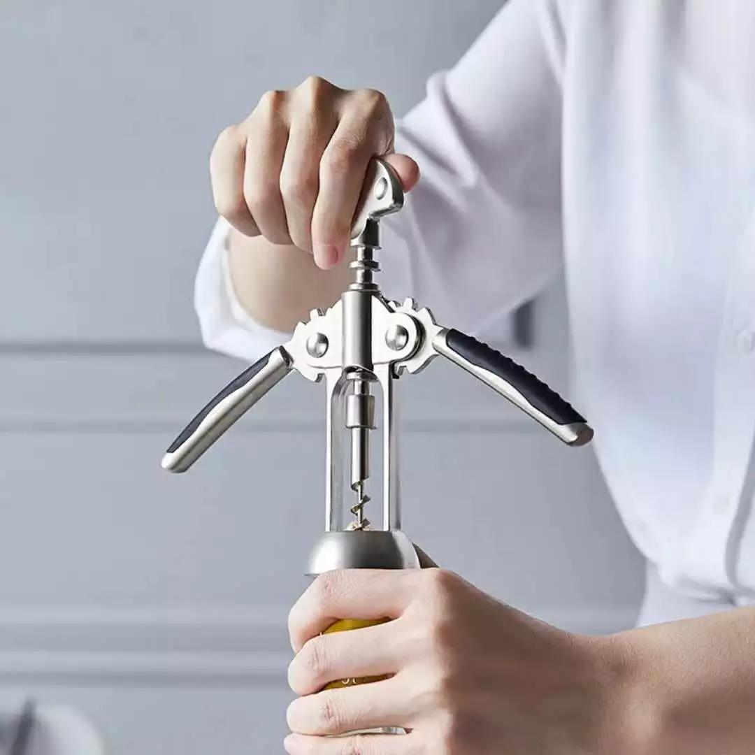 对于日常饮用场景,侯侯最为推荐的是蝴蝶型开瓶器。相比海马刀的单一支点,蝴蝶型