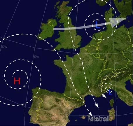 Mistral是一股来自阿尔卑斯山的干冷强风,在冬季和春季最为常见。尽管Mistral风会对