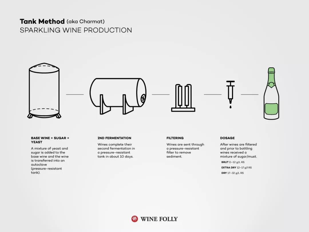 普洛塞克采用的是罐式法:与香槟和Cava在瓶内二次发酵不同,普洛塞克会将酿造好的