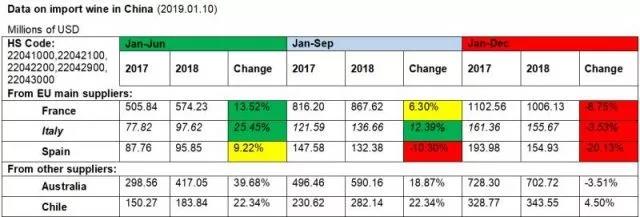 这一下跌主要来自法国、澳大利亚、意大利和西班牙这4大主要产区的葡萄酒进口额有