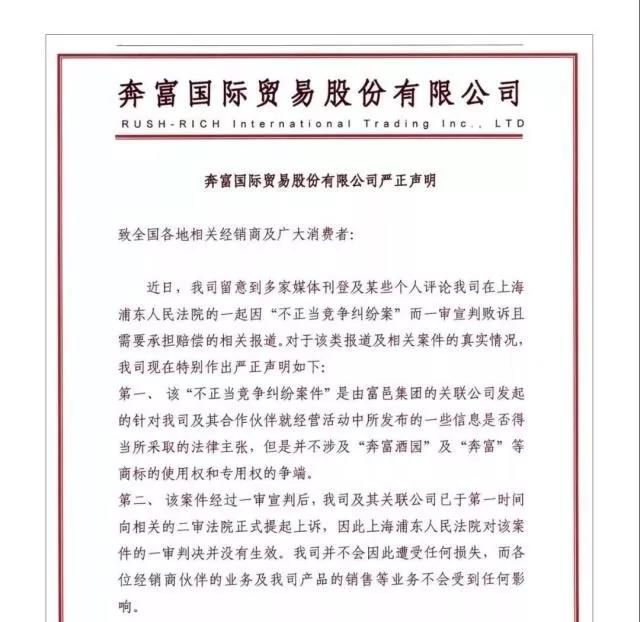 奔富庄园因构成虚假宣传的不正当行为,被法院判决一审败诉,赔偿富邑集团经济损失