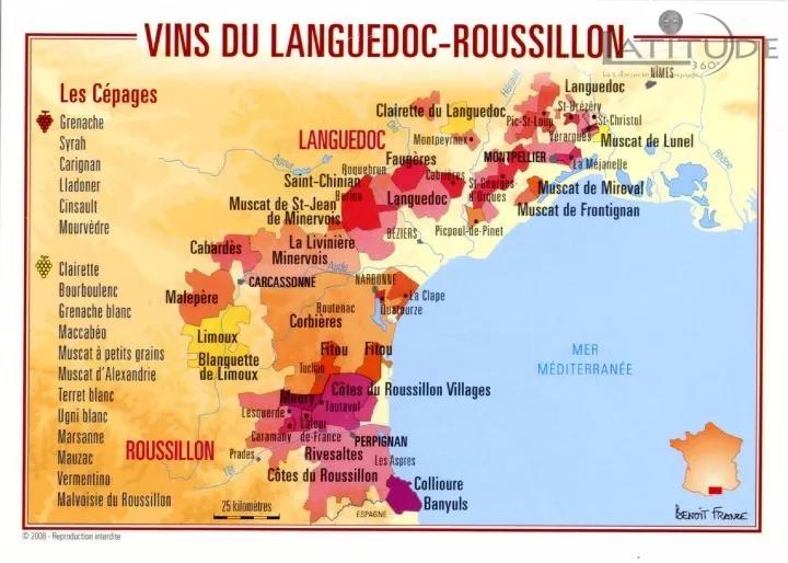 区包括原来的朗格多克-鲁西荣区,三分之二的西南产区,以及部分南罗纳河谷产区。