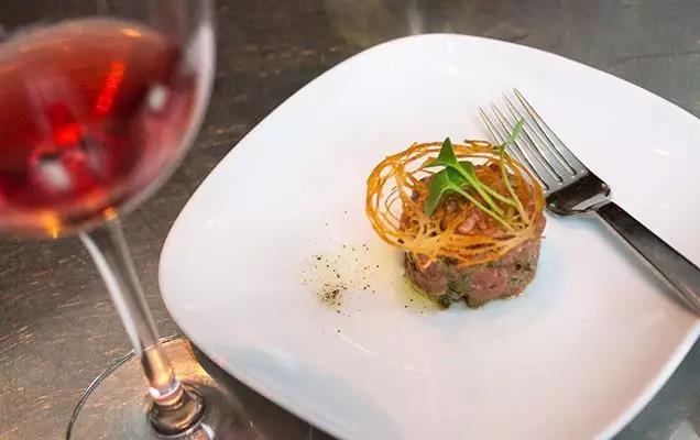 同样,牛肉塔塔尽管是红肉,但其清爽的口感,跟桃红葡萄酒或香槟有可能更搭。