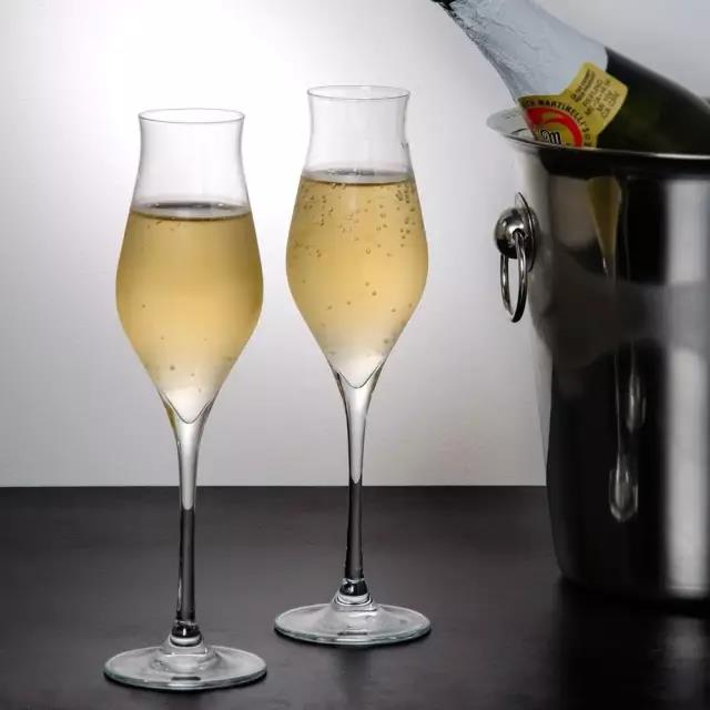 起泡酒杯通常呈笛型,也常被称作“笛型杯”。笛型杯杯肚细长,造型优雅,有利于